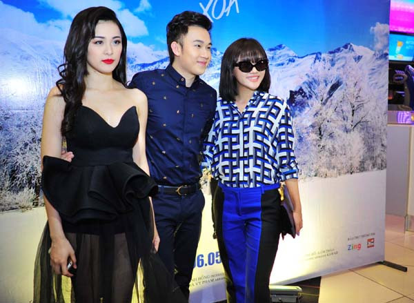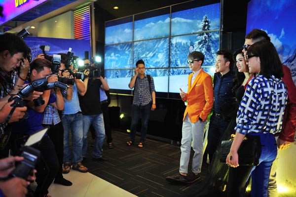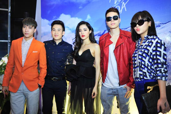 Cô nàng nổi bật khi tạo dáng bên dàn sao trẻ trước ống kính.