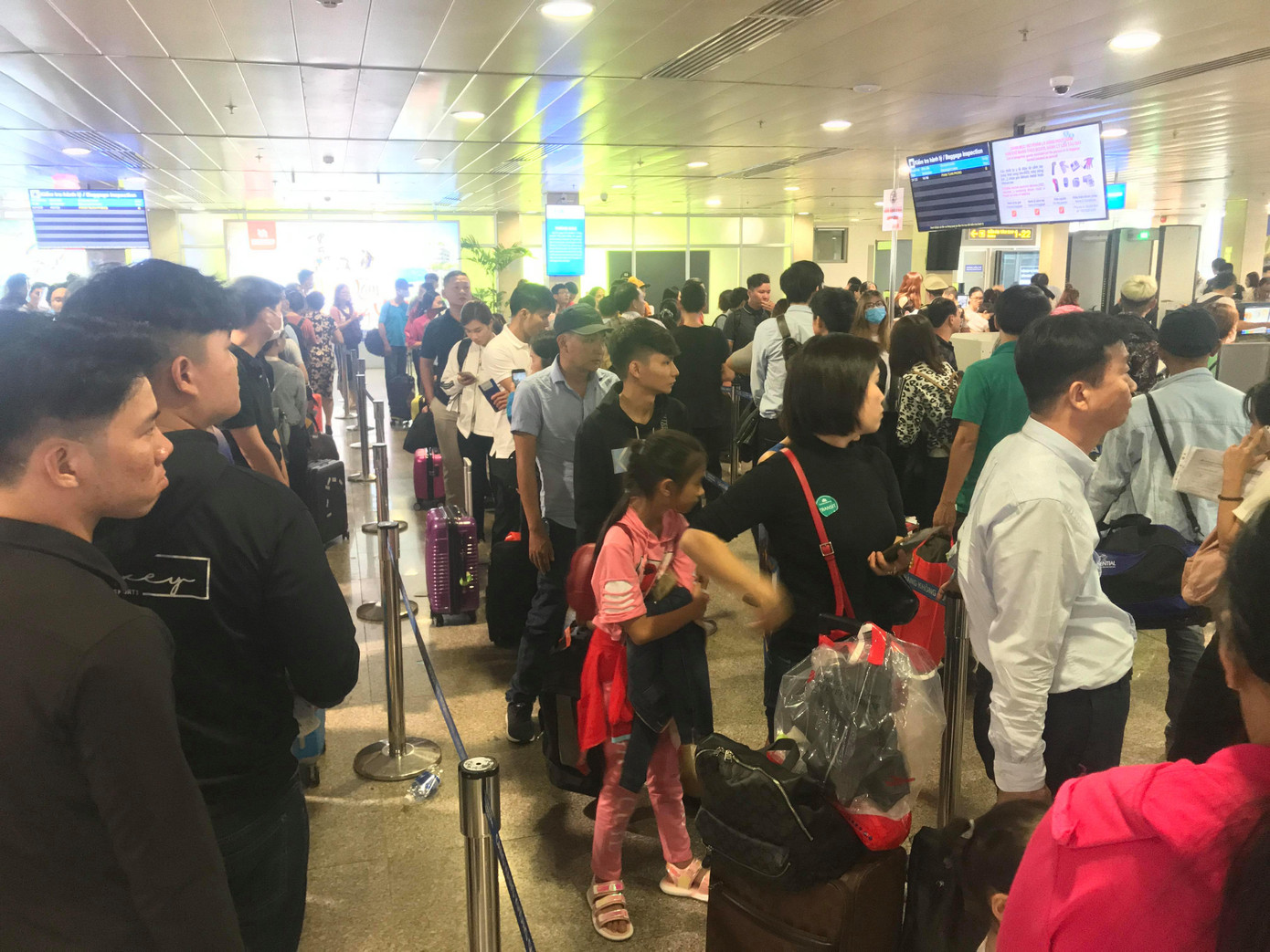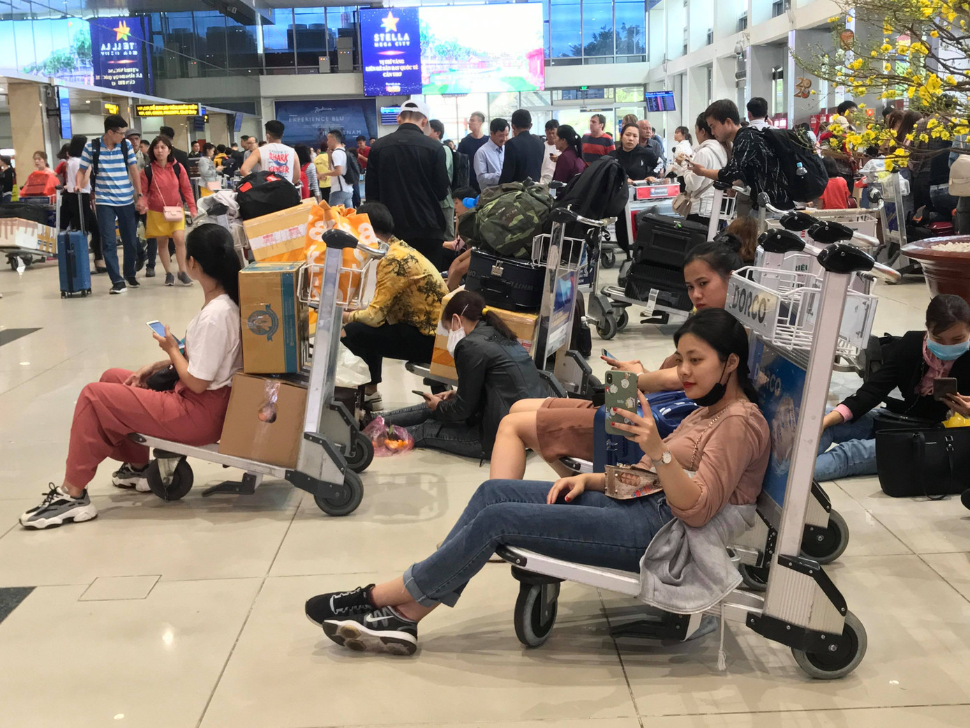 Bên cạnh đó, những ngày cao điểm tết, sân bay khuyến cáo người dân nên đến trước 3-4 tiếng nên lượng người ngồi đợi càng đông.