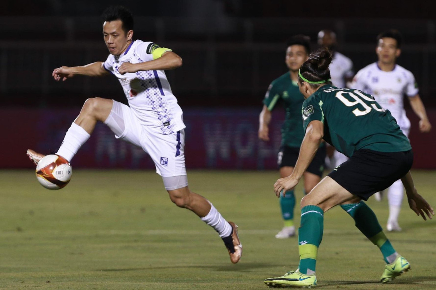 Phút 58: Mặc dù chơi hơn người, nhưng việc đội khách lùi về phòng ngự tập trung khiến Hà Nội FC không tìm thấy nhiều khoảng trống để khai thác. HLV Daik Iwamasa có sự điều chỉnh, khi Đậu Văn Toàn vào sân thay cho Đình Hai.