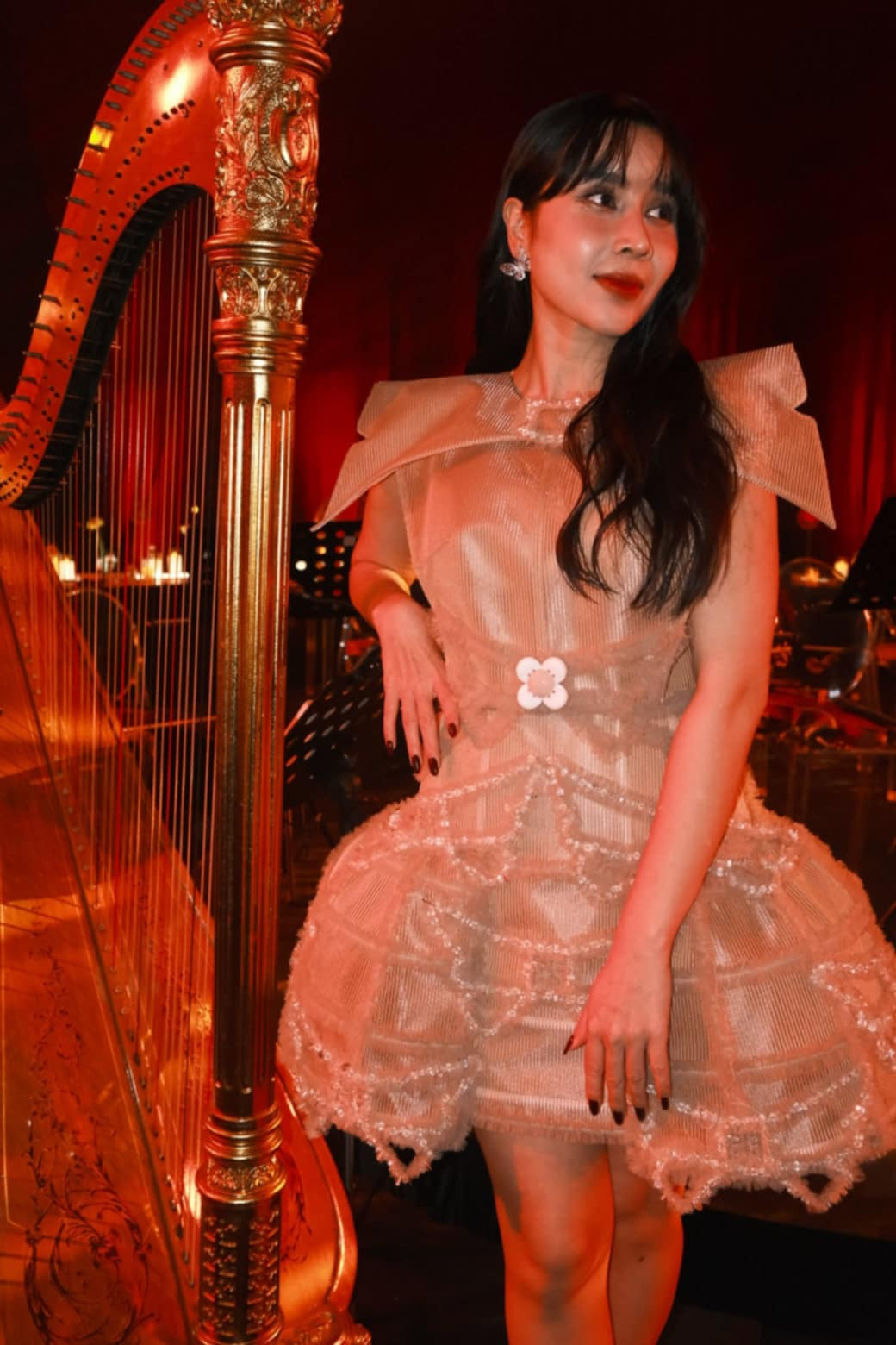 Với hơn 40 thiết kế độc bản, BST khiến dàn khách mời không chỉ ấn tượng bởi sự độc đáo, khác biệt mà còn bất ngờ mỗi trang phục đều mang một sắc thái riêng, khó bị nhầm lẫn với nhau. Ca sĩ Lưu Hương Giang cũng diện outfit đầy tinh tế và sang trọng.