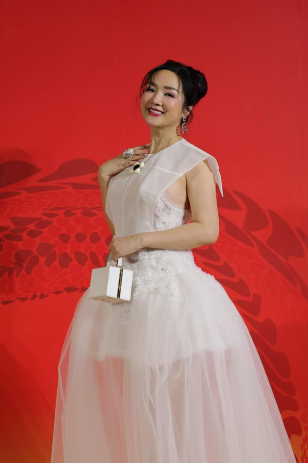 Bà xã Trường Giang diện trang phục đậm chất công chúa và khoe khéo đôi chân dài 'vạn người mê'. Nhã Phương dành thời gian chăm sóc gia đình nên ít đóng phim. Mỗi sự xuất hiện tại sự kiện thế này của nữ diễn viên luôn nhận được nhiều sự quan tâm của công chúng.