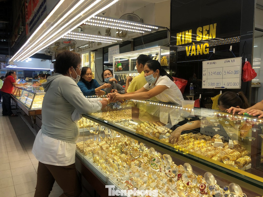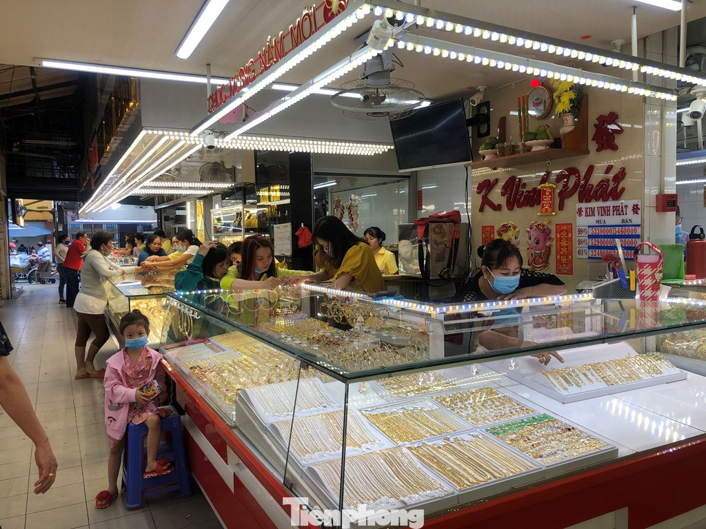 Sáng 20/2 (mùng 9 Tết), tại nhiều tiệm vàng ở TPHCM, người dân đã đi mua sắm từ sớm. Tại những khu chợ chuyên doanh vàng bạc như chợ Thiếc (Q.11), phố vàng bạc (Q.5)…, đa số các tiệm vàng đều có khách...