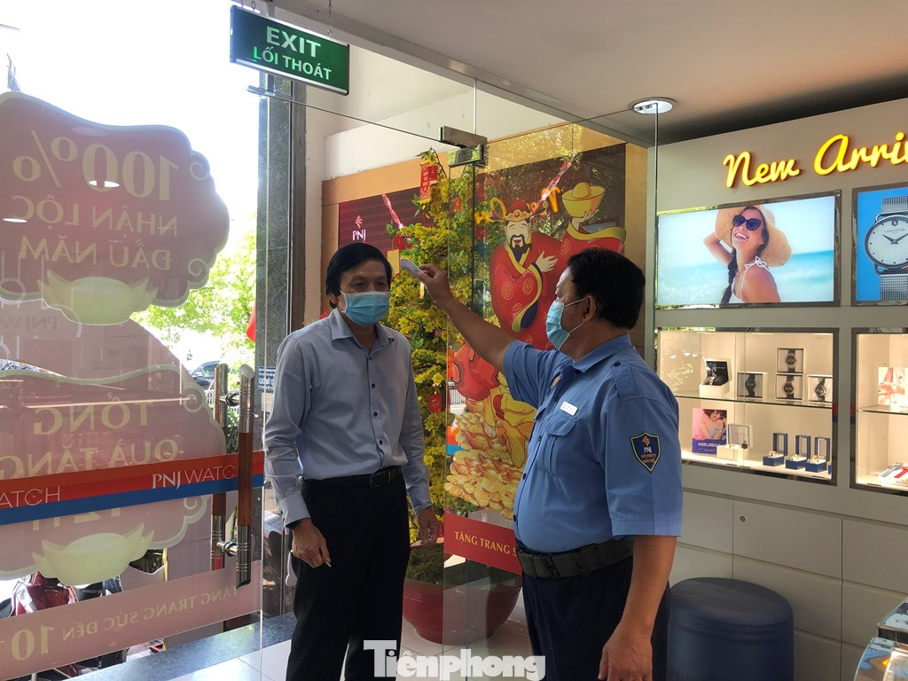 Tại các tiệm vàng đều bố trí nhân viên đo thân nhiệt cho tất cả khách trước cửa ra vào