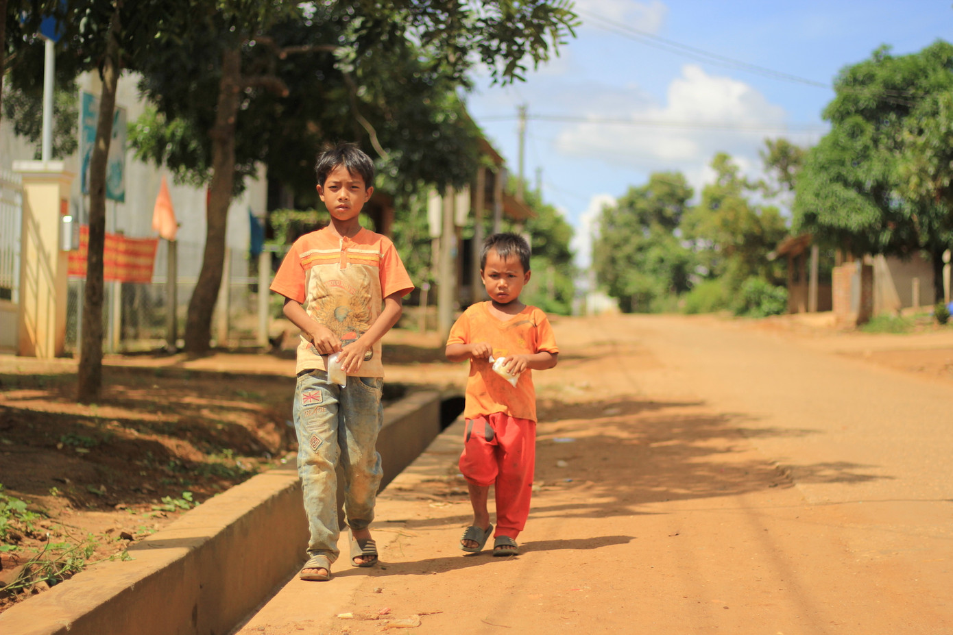 Các em nhỏ đi chơi trong làng Bông Hiot