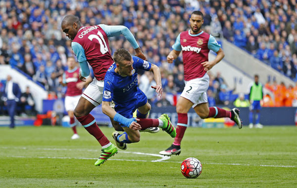 Nhưng Vardy cũng là tội đồ. Phút 57, trọng tài cho rằng anh ngã vờ trong vòng cấm ở pha tranh chấp với Angelo Ogbonna. Trước đó, Vardy đã nhận một thẻ vàng trong hiệp một do xoạc bóng vào chân Cheikhou Kouyate. Kết quả, Leicester mất đi cầu thủ quan trọng nhất để thi triển lối chơi phản công mà họ đang bày ra.