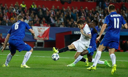 Lọt vào vòng 1/8 trong lần đầu tham dự Champions League với tư cách đội nhất bảng G, Leicester mang theo niềm tự hào của một đội bóng Anh khi đến làm khách trên sân Sanchez Pizjuan. Tuy nhiên, các học trò của Claudio Ranieri hoàn toàn lép vế trong cả trận. Họ chỉ nắm 33% thời lượng kiểm soát bóng so với 67% của đội chủ nhà, thực hiện sáu pha dứt điểm trong cả trận trong khi Sevilla có 16 cú dứt điểm.