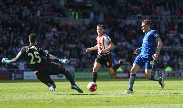 Thế trận giằng co chỉ chấm dứt nhờ pha bóng xuất thần của Danny Drinkwater ở phút 66. Tiền vệ mới được gọi lên đội tuyển Anh tung ra một đường chuyền dài xuất sắc từ phần sân nhà để Jamie Vardy băng lên, dùng tốc độ loại bỏ Younes Kaboul rồi cứa lòng tung lưới Sunderland.