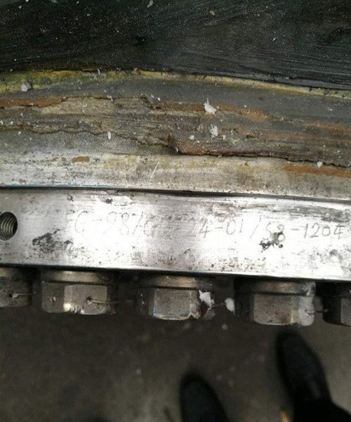 Mảnh vỡ hình đĩa bằng kim loại với nhiều đinh tán được người dân tìm thấy tại hiện trường.
