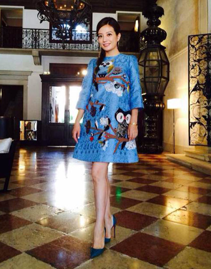 Triệu Vy mặc váy nhăn nhúm, khi dự khai mạc Liên hoan phim Venice (Italy).