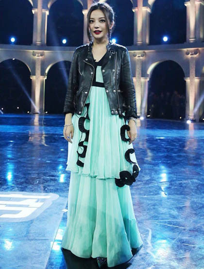 Điểm nhấn ở eo tạo cảm giác vòng hai của Triệu Vy thon gọn hơn.