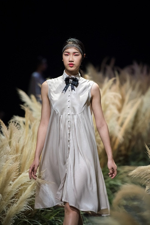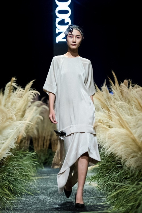 Nếu ở những bộ sưu tập trước, Ngọc Hân theo đuổi việc sáng tạo họa tiết, lần này cô hoàn toàn sử dụng vải trơn.