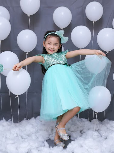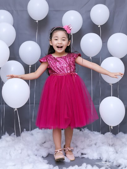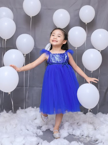 BST sử dụng chất liệu sequin lấp lánh mix cùng voan với 10 màu khác nhau. Kim sa được đính kết công nghiệp bằng chỉ cước thành từng tấm đảm bảo giặt giũ ko bị bong. Lớp lót bằng vải thô mềm và mát nên bé mặc kim xa mà ko hề ngứa hay khó chịu.