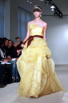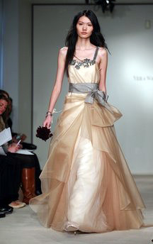 Vẫn trung thành với phong cách từ những ngày đầu: màu sắc trầm dịu nhẹ, chất liệu voan, satanh sang trọng, bờ vai trần gợi cảm, tất cả tạo nên vẻ đơn giản mà sang trọng, nữ tính thuần khiết mà lộng lẫy, cổ điển mà vẫn trẻ trung. Đây chính là điểm hấp dẫn của váy cưới Vera Wang.