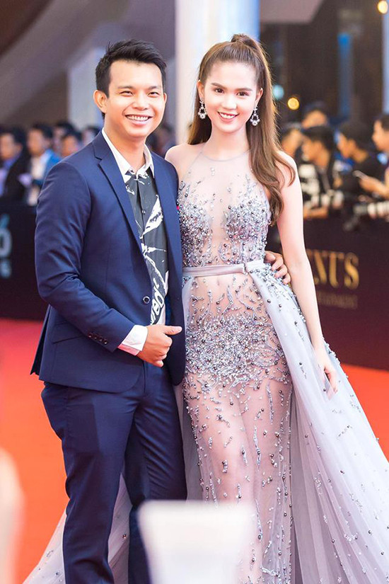 Là tâm điểm trên thảm đỏ Đêm hội chân dài 10, Ngọc Trinh tỏa sáng trong bộ váy xuyên thấu mỏng manh, đính kết hạt rất kỳ công.
