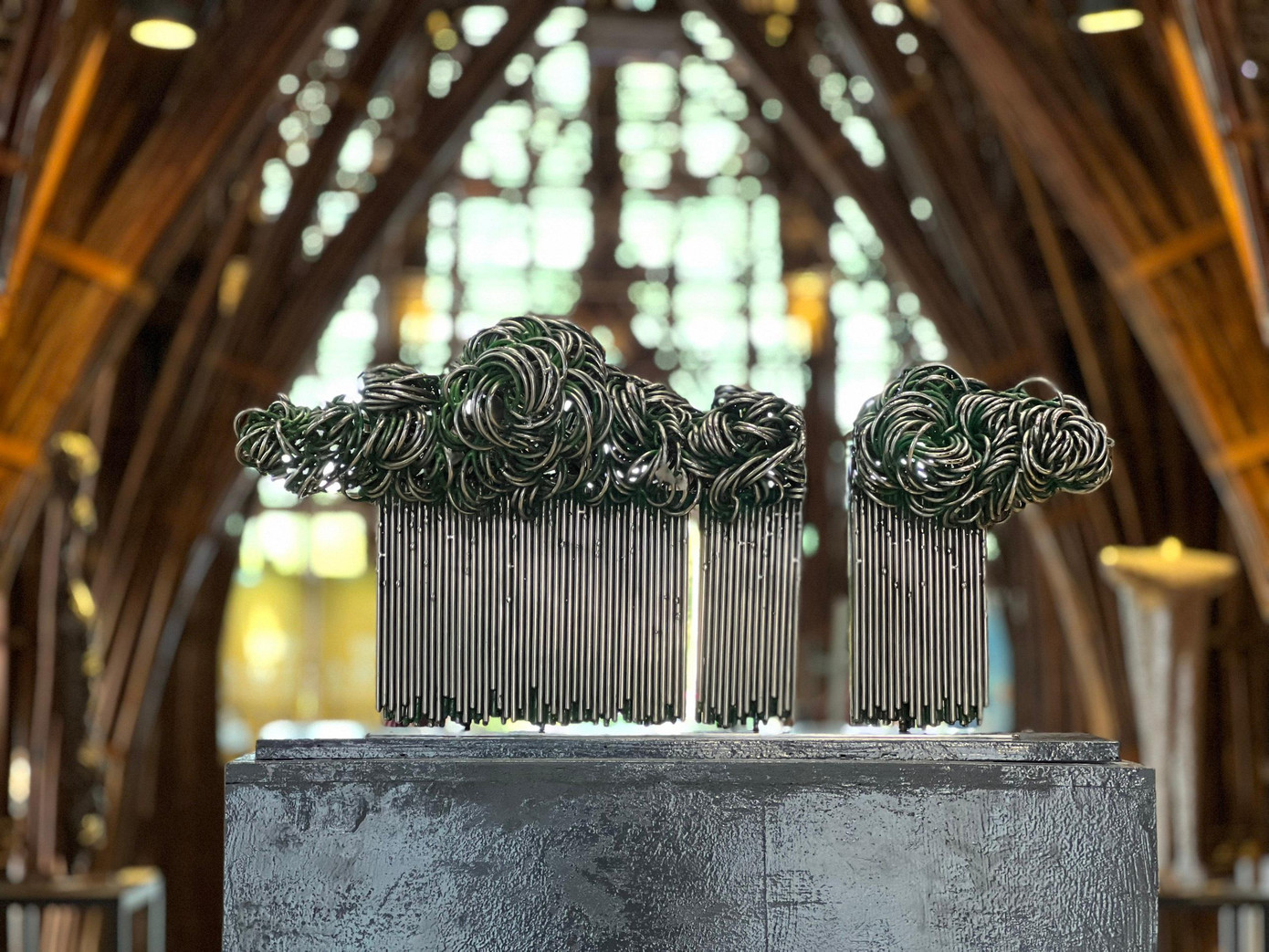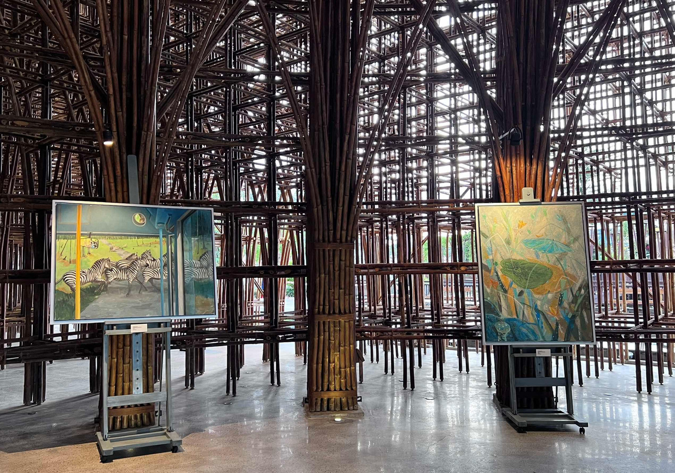 Hơn 30 tác phẩm nghệ thuật đa dạng và độc đáo được trưng bày trong không gian Nhà Tre - một công trình kỷ lục, độc đáo và kinh điển của kiến trúc sư Võ Trọng Nghĩa - mở ra những đối thoại mới và sự giao thoa đầy thú vị giữa nghệ thuật và kiến trúc.