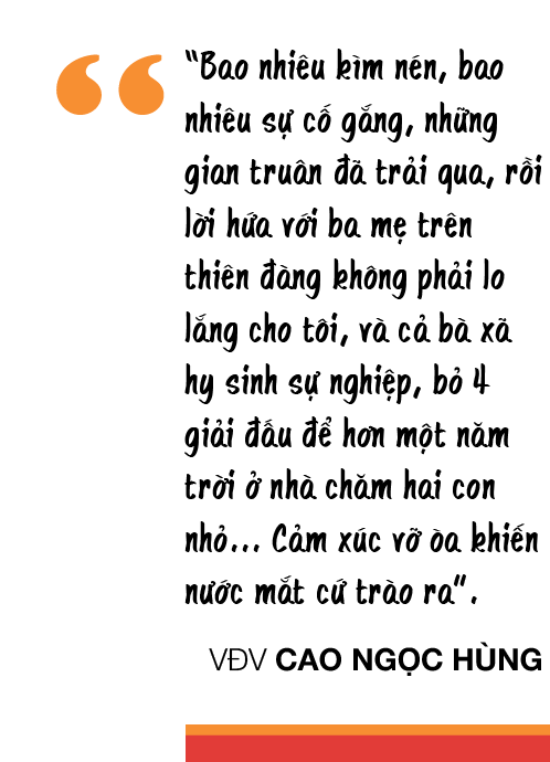 “Khi nhiều đối thủ lần lượt ném qua mốc 42m trong khi thành tích tốt nhất trong sự nghiệp của tôi là 41,71m, hiển nhiên là mình không có cửa giành huy chương. Để vượt qua họ phải ném lên 43m, mà mình làm sao nổi”, Cao Ngọc Hùng nhớ lại.