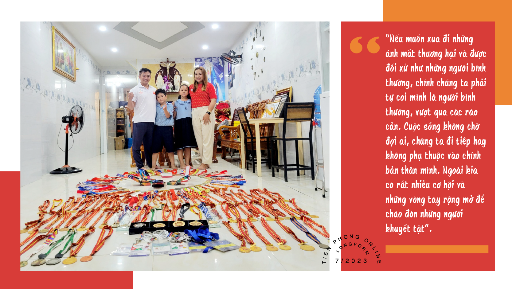 Rồi thầy nói “chơi thể thao dành cho người khuyết tật, em sẽ được nhiều quà”. Và thế là Hùng đồng ý. Nhà Hùng nghèo quá. Ba làm dân quân khu phố chỉ có mức lương tượng trưng, kinh tế gia đình dồn cả vào mẹ, người làm công việc lau dọn nhà cửa theo giờ. Thu nhập chẳng là bao trong khi nhà lại có quá nhiều thành viên, mà Hùng chân tay lại thế này. Chơi thể thao, dành được quà ít nhất sẽ khiến ba mẹ vui, biết đâu lại đỡ đần chút đỉnh.