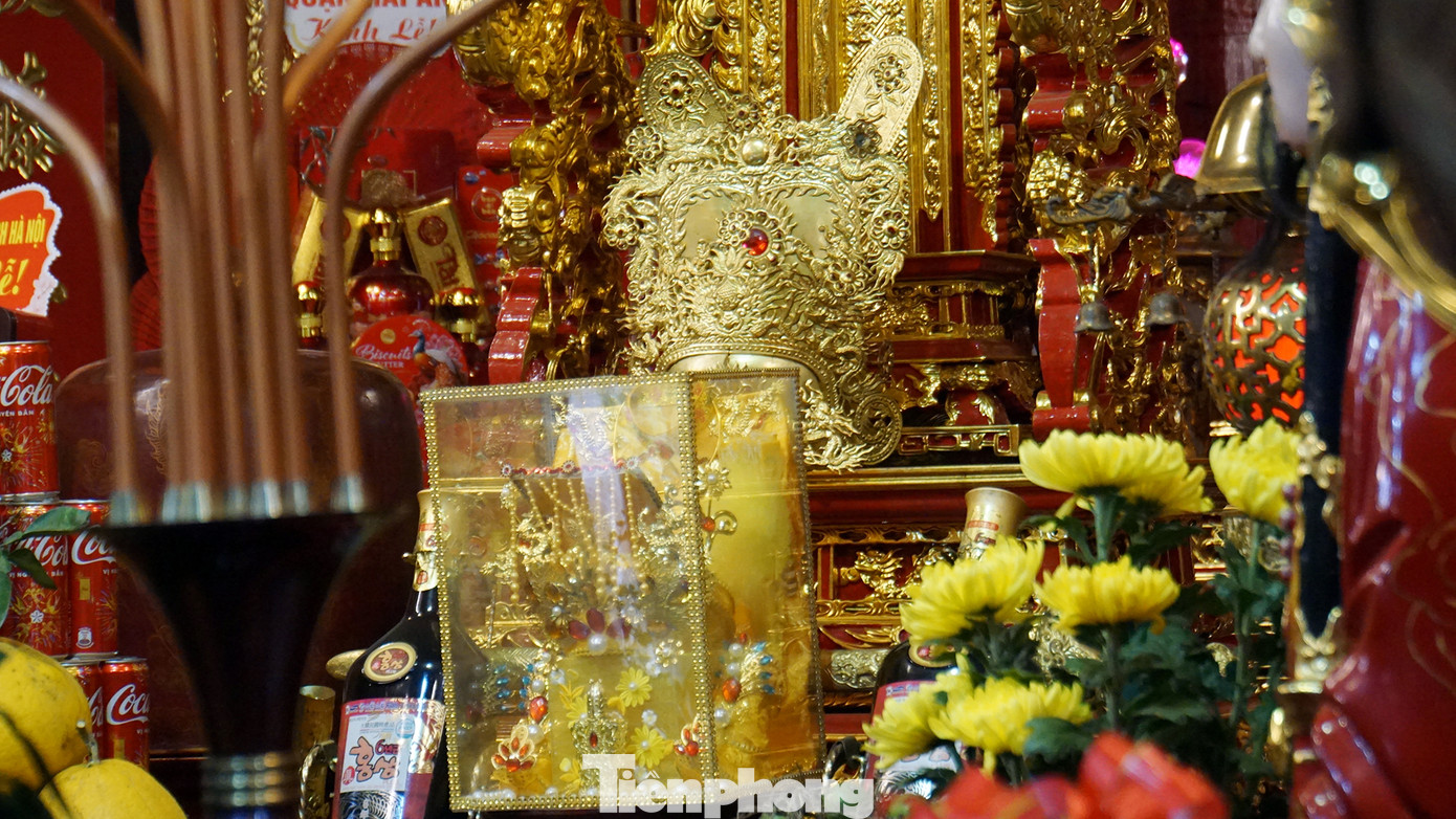 | Trong Từ Lương Xâm còn lưu giữ nhiều di vật, cổ vật như 25 đạo sắc phong, 8 bia đá, thần tượng, long ngai, bài vị, cùng các cấu kiện kiến trúc, mảng chạm khắc mang phong cách nghệ thuật thời Lê Trung Hưng (thế kỷ XVII-XVIII) và thời Nguyễn (thế kỷ XIX-XX). Trong ảnh là tượng Đức Vương Ngô Quyền ngồi trên long ngai với nhiều họa tiết chạm rồng, phượng, hoa văn. |