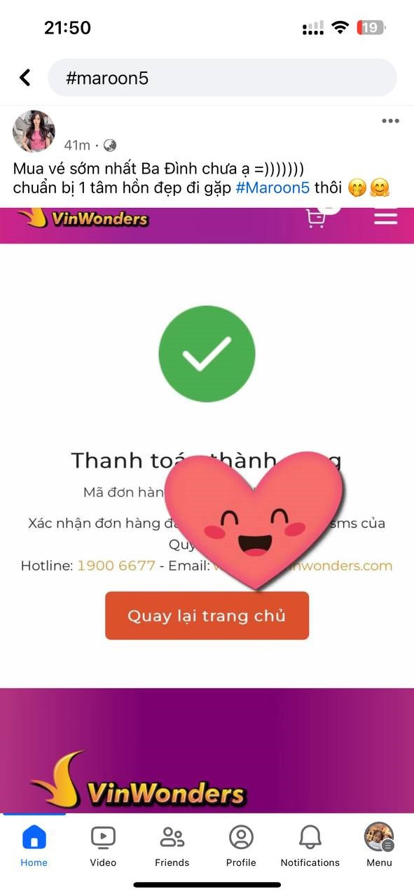 Nhiều người hâm mộ ngay lập tức khoe niềm vui sướng khi “giao dịch mua vé 8Wonder thành công” trên trang cá nhân và rủ rê lập hội đi Phú Quốc “đi đu” Maroon 5. Cũng không ít bạn trẻ ngậm ngùi tiếc nuối vì “chậm chân” không kịp nhận ưu đãi vé bán sớm của siêu nhạc hội đình đám này.