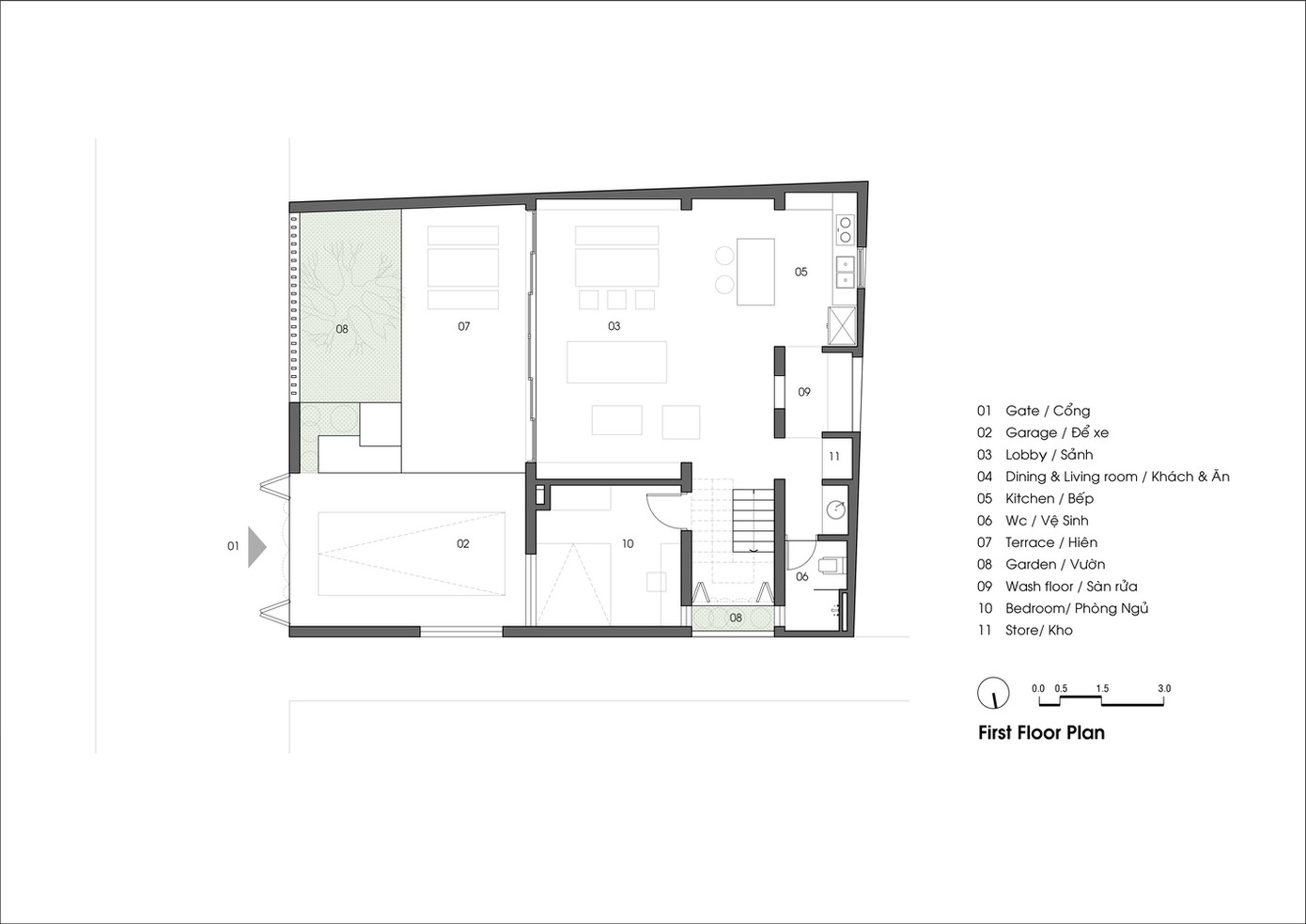 TPO - Công trình được xây dựng nhằm thay thế cho ngôi nhà cũ đã xuống cấp, không còn phù hợp với nhu cầu của gia chủ. Những nét đẹp của ngôi nhà cũ đều được giữ lại để đáp ứng mong muốn của gia chủ về một không gian sống gần gũi quen thuộc, hoài niệm về nơi sinh ra và lớn lên.