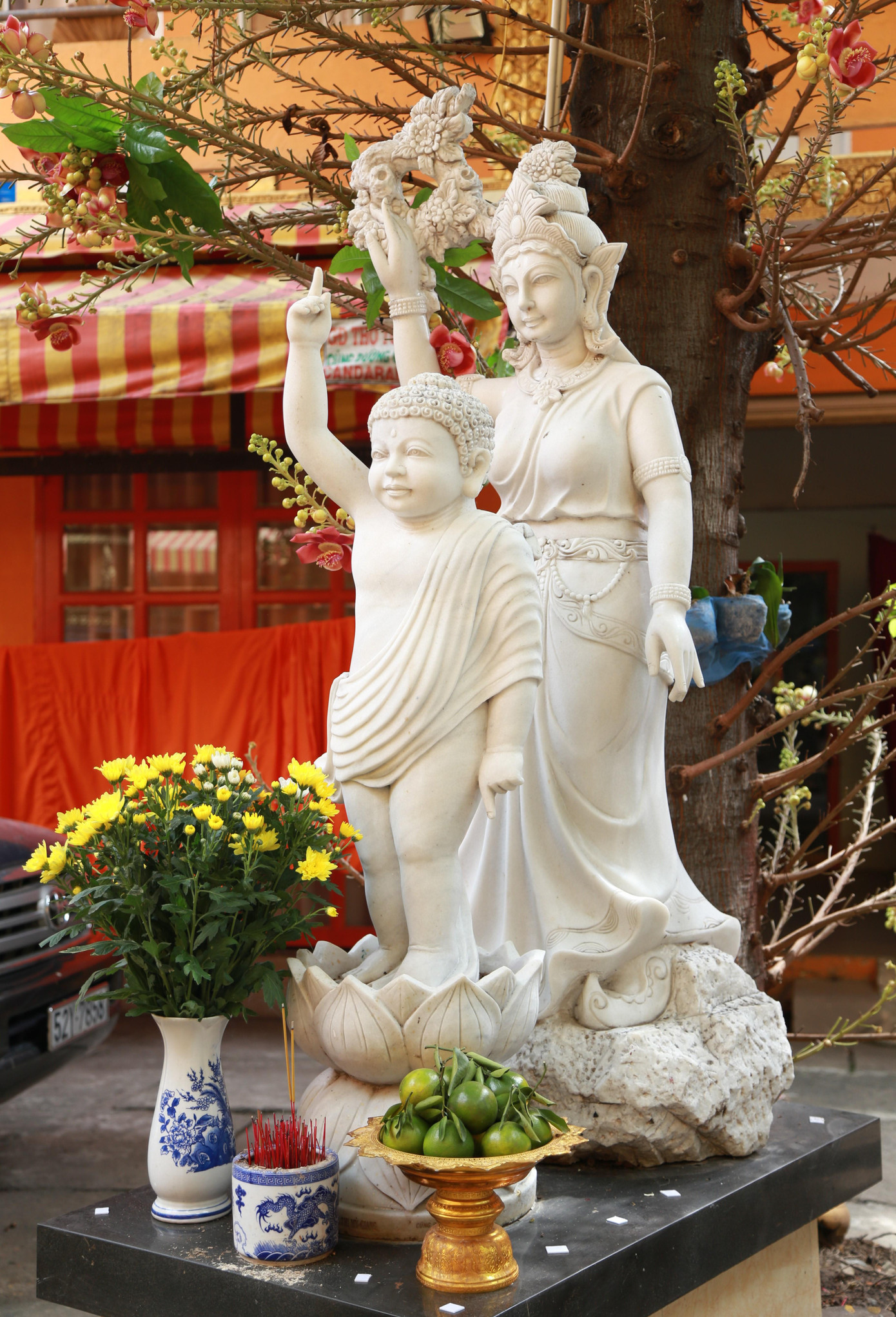 Chùa cũng đặt tượng tái hiện cảnh Thái tử Tất Đạt Đa lúc xuất gia tu tập và trở thành đức Phật sau này.