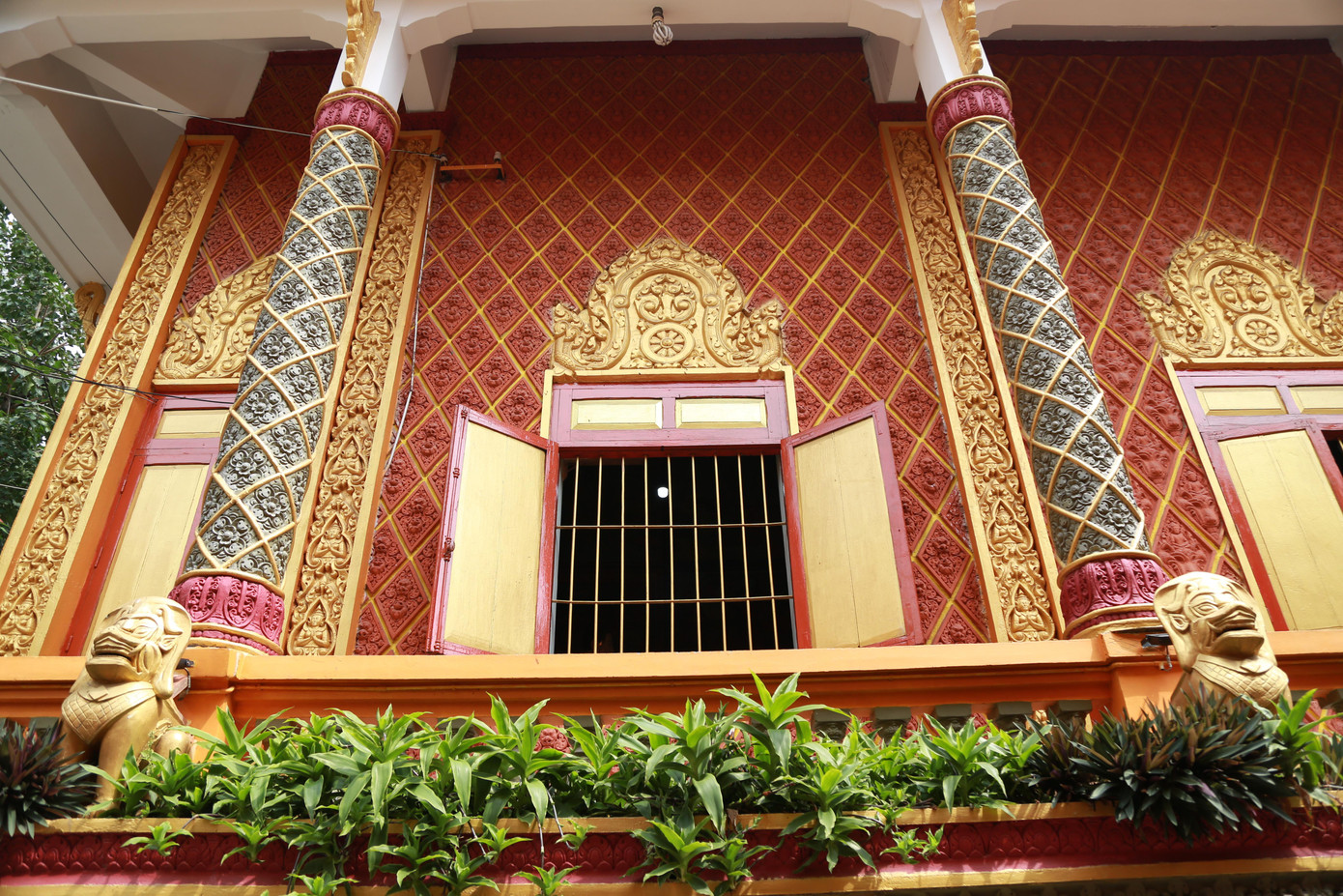 Các công trình trong chùa được chạm khắc, sơn vẽ theo phong cách điển hình của chùa Khmer.
