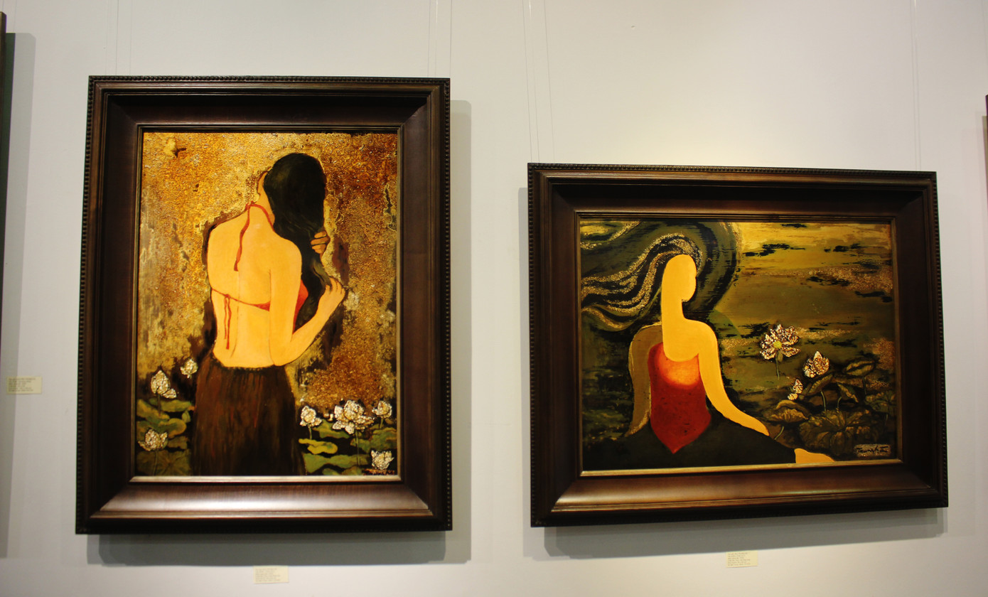 Tác phẩm "Thôn nữ 2" và "Thôn nữ 3" của tác giả Bùi Trung Hà.