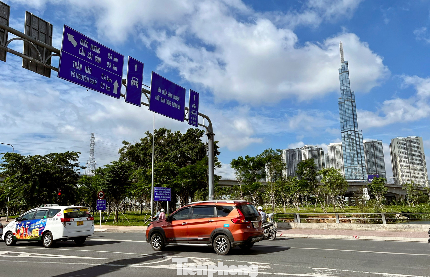 | Đường Võ Nguyên Giáp đi qua khu vực trung tâm của TP Thủ Đức hiện hữu. Ngoài tuyến chính ở giữa có 10 làn xe, hai bên còn có hai đường song song. |