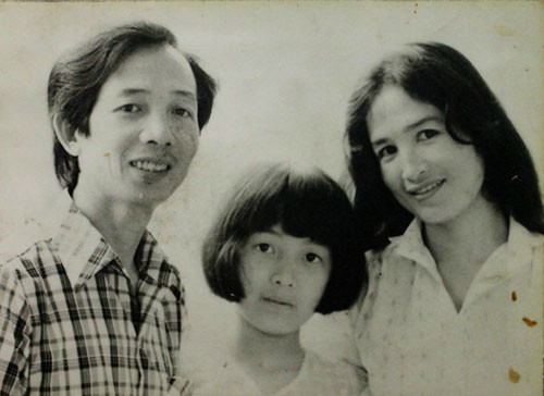 Nữ nghệ sĩ ở tuổi ngoài 30 khi chụp ảnh cùng chồng và con gái Bích Trà.