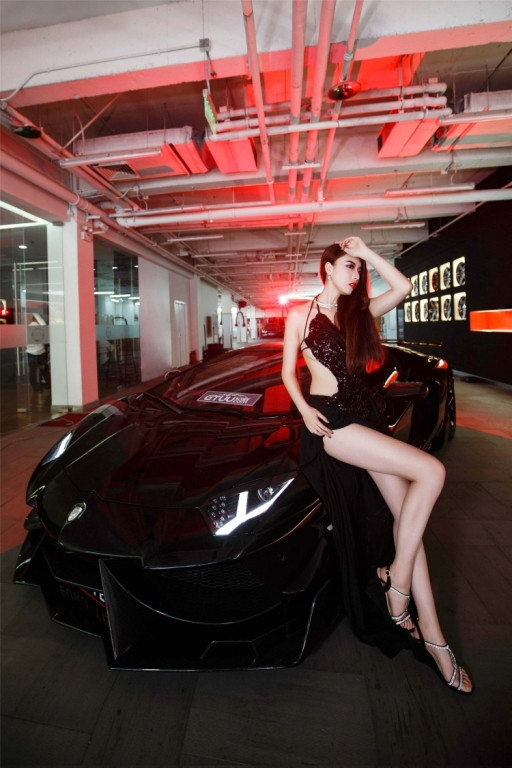Vẻ đẹp huyền bí của người mẫu bên siêu xe Lamborghini Aventador
