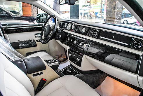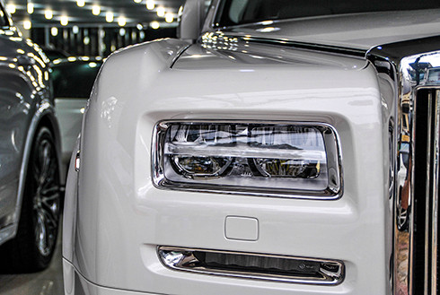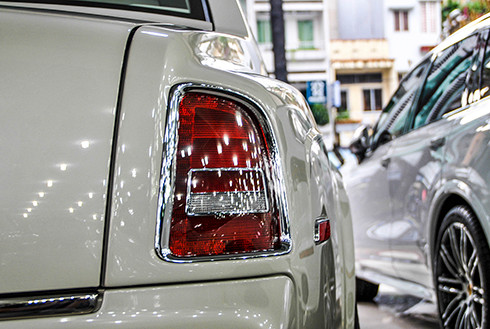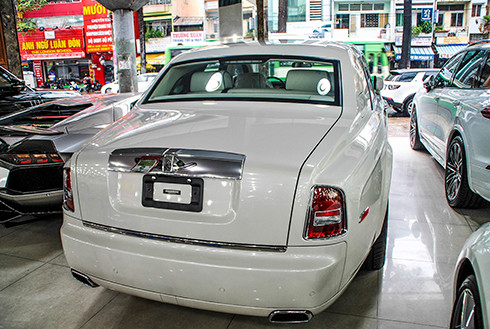 Chiếc xe siêu sang mới được đưa về Việt Nam với lớp sơn trắng, dài 5.839 mm, rộng 1. 989 mm và cao 1.639 mm. Điểm đặc trưng trên những dòng Phantom chính là đường vẽ tay "coachline" trải dài từ phần trước đến phía sau xe. Hiện tại, để thực hiện những đường coachline chỉ có duy nhất nghệ nhân Mark Court đảm nhận.