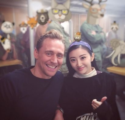 Cảnh Điềm bên tài tử Tom Hiddleston - nam chính của phim "Kong: Đảo đầu lâu".