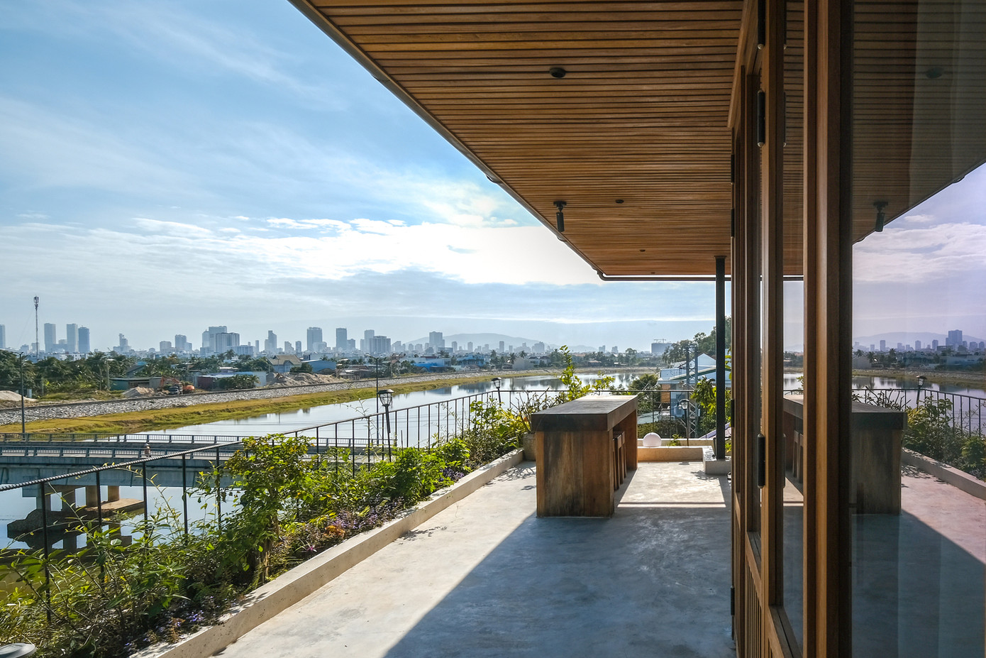 Khu vực hiên của các tầng đều cố ý mở rộng để khai thác triệt để cảnh quan thành phố yên bình bên cạnh dòng sông.