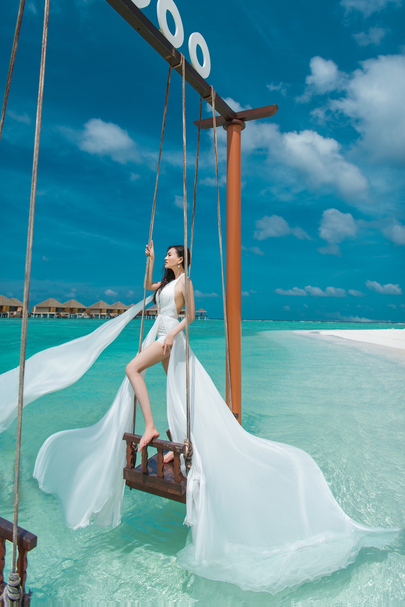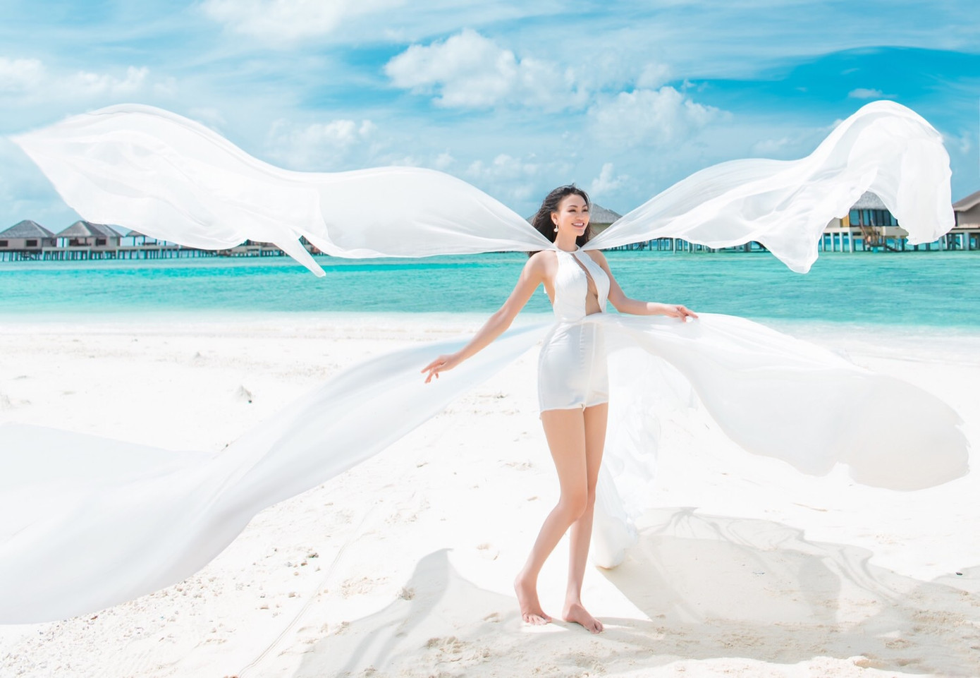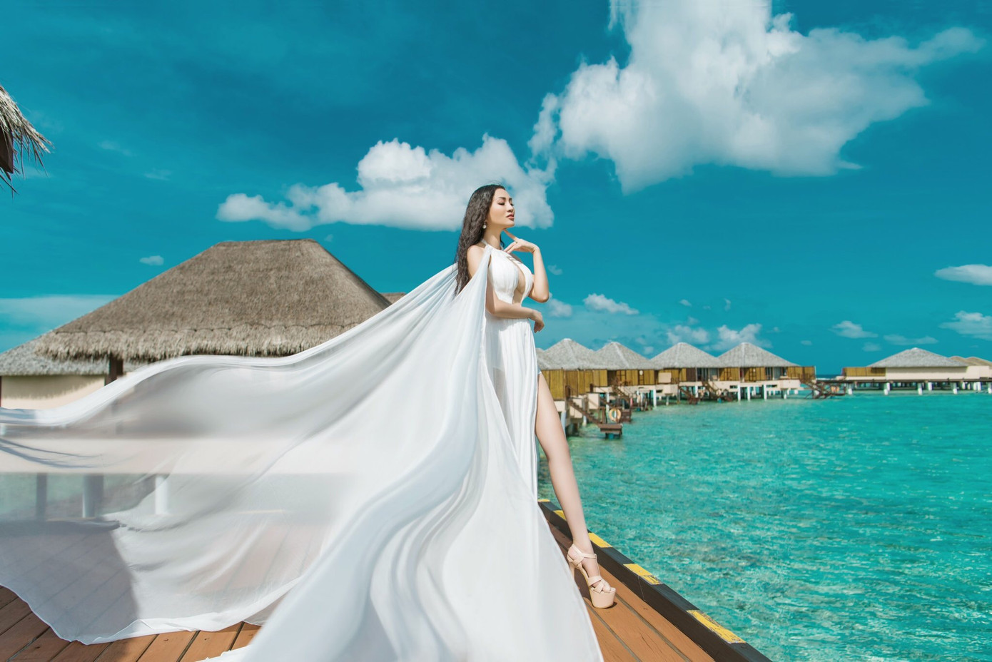 Vẻ đẹp thuần khiết của nữ hoàng Trần Huyền Nhung tại thiên đường Maldives