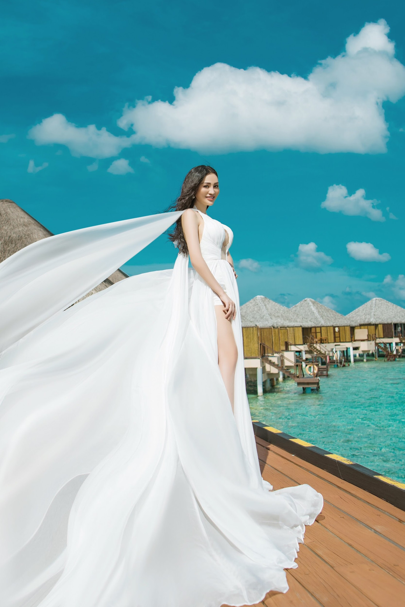 Với bản tính luôn muốn thử thách bản thân ở những lĩnh vực khác nhau, nguời đẹp không cho phép bản thân dừng lại ở một điểm nhất định. Là một hoa hậu thời trang Châu Á, chị luôn khai thác những mẫu thời trang mới, lạ. Đến với biển Maldives, Trần Huyền Nhung hoá nữ thần tại thiên đường của hạ giới trong chiếc đầm trắng tinh khôi, ngọt ngào