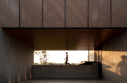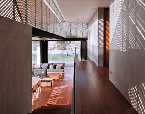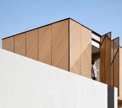 Ngôi nhà được bao bọc bởi những mảng gỗ chéo, vừa tạo sự riêng tư, vừa lấy ánh sáng tự nhiên khắp các phòng.