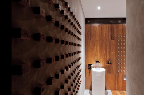 Tường được ốp gỗ cầu kỳ, sáng tạo nên có nét riêng biệt.