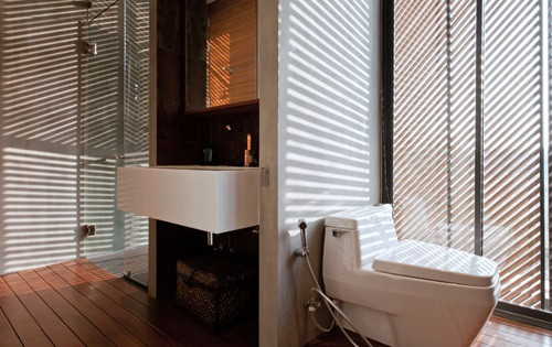 Từ phòng vệ sinh và phòng tắm đều có thể nhìn ra ngoài, lấy ánh sáng tự nhiên.
