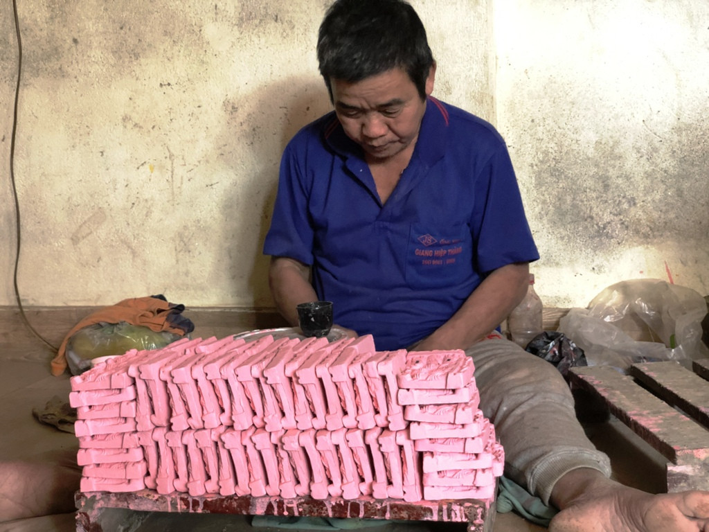 Được biết, để đủ phục vụ nhu cầu của thị trường, từng hộ dân làng nghề có thể chế tác từ 500 - 600 chiếc tượng nung.