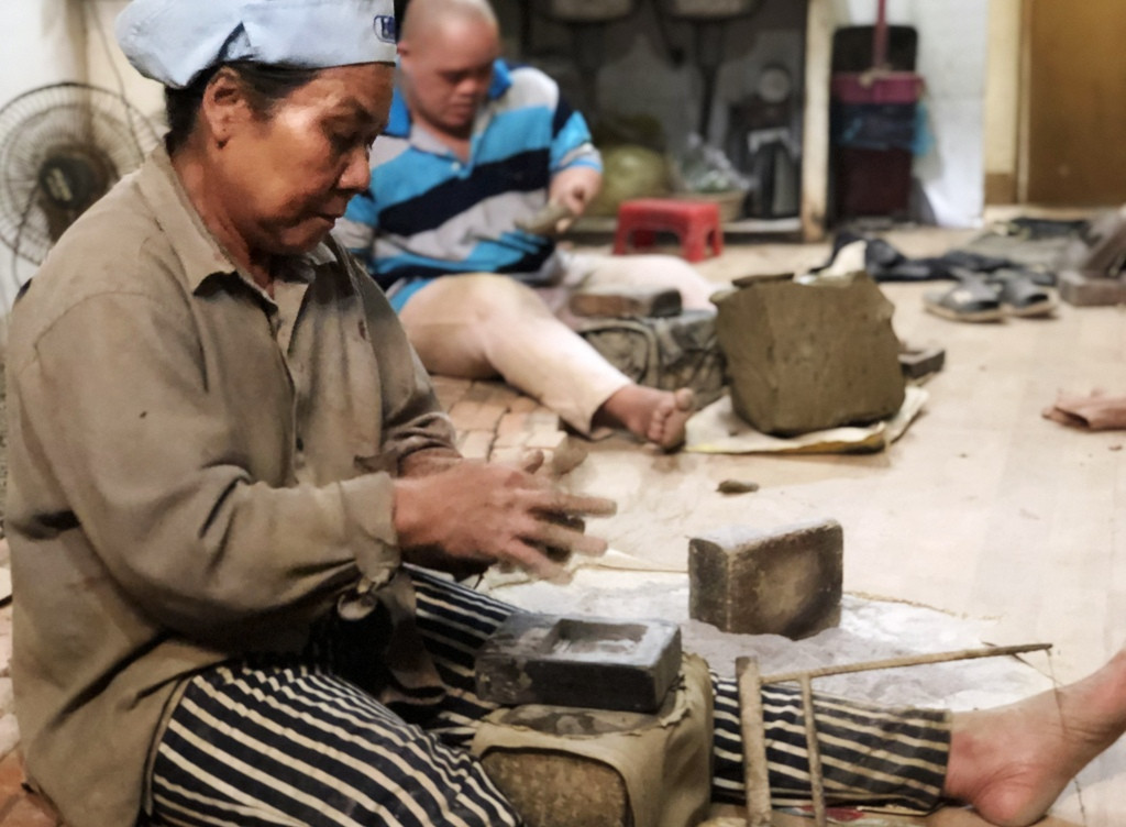 Để làm ra những ông Táo nhỏ hơn bằng bàn tay người lớn, nghệ nhân làng Địa Linh phải trải qua rất nhiều công đoạn chế tác. Đặc biệt là đòi hỏi sự tập trung, tỉ mỉ trong từng công đoạn.