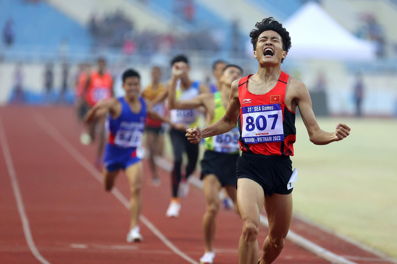 | Khoảnh khắc ăn mừng chiến thắng của các VĐV điền kinh Việt Nam. |