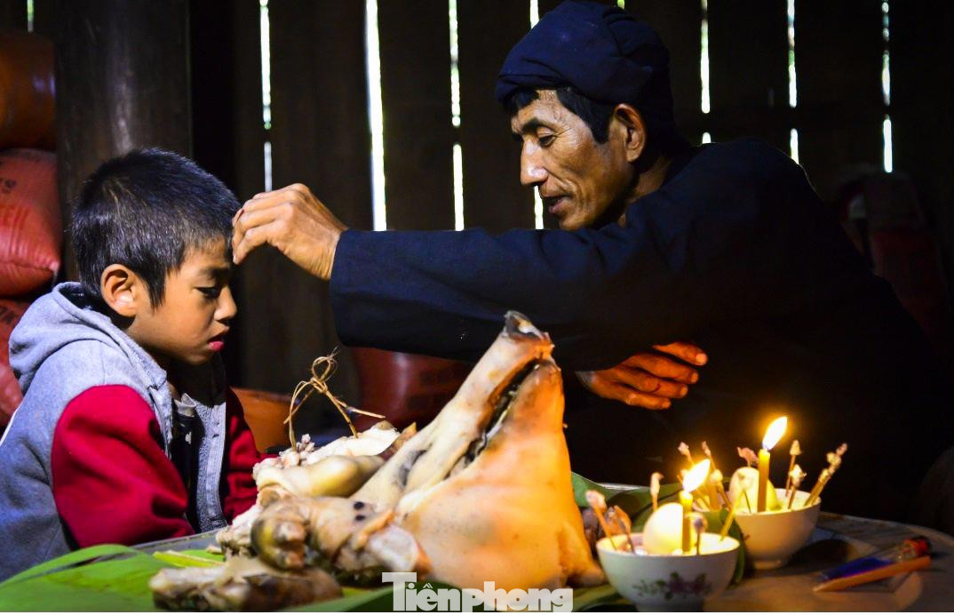 | Tại nhà thầy cúng, các gia đình sẽ mang lễ vật đến và bày biện lên mâm cúng đặt dưới chân cây hoa. Con vật dâng lễ hiến sinh (gà), các loại củ, quả, bánh, 2 con cá khô nấu canh với lá xả (pùm phi), khoai sọ (pùm xì), rượu (tý khá)…được sắp đặt trên mâm cúng. |