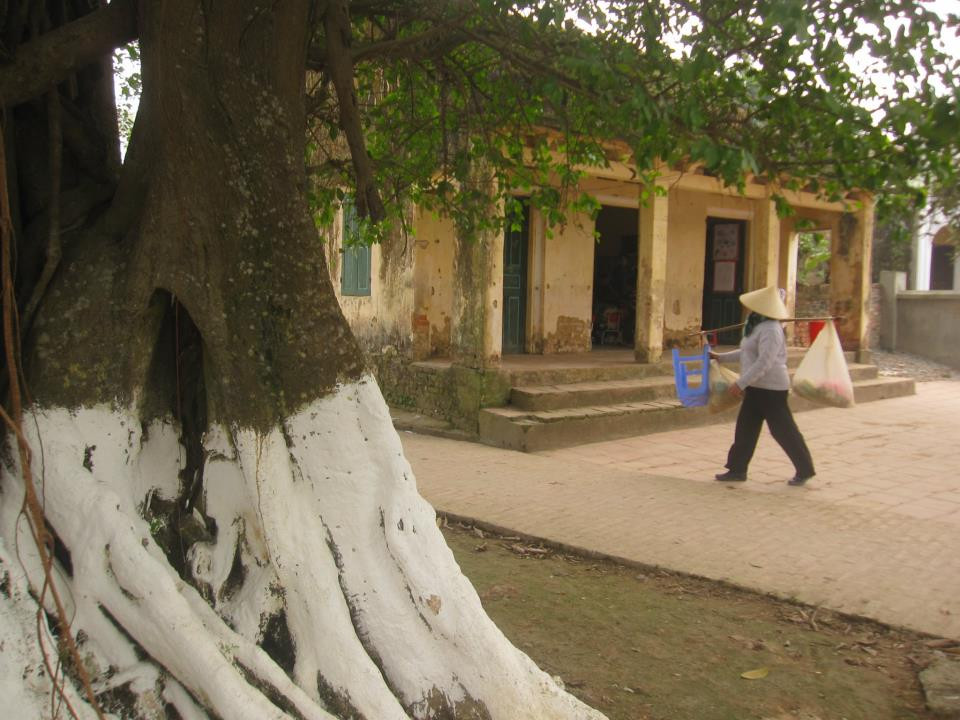 Khung cảnh nên thơ với cây đa, giếng nước, sân đình đặc trưng của những ngôi làng Việt ở miền Bắc.