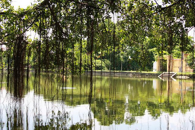 Ao làng được bao quanh bởi các ngõ xóm và các từ đường, miếu mạo cũng như những thửa vườn nhỏ xinh của người dân trong làng.
