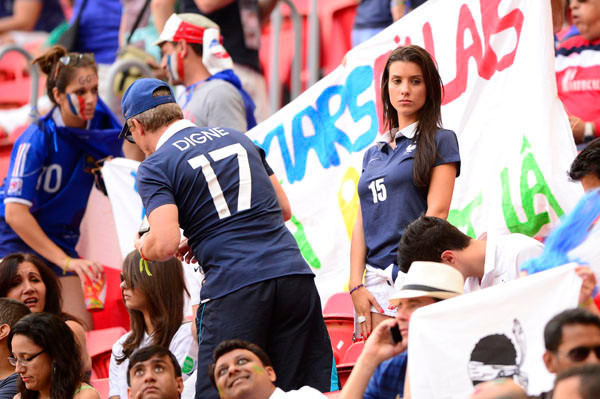 TPO - Xuất hiện trên khán đài Estadio Nacional để cổ vũ cho tuyển Pháp của chồng, người đẹp Ludivine Kadri thu hút mọi ánh nhìn bởi vóc dáng vô cùng quyền rũ và nụ cười mê hoặc.