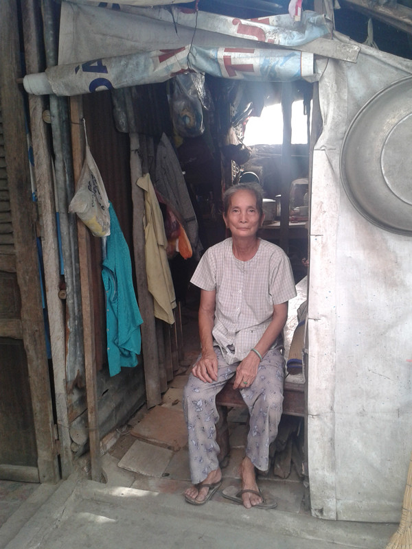 Chăm sóc cụ duy nhất có người con dâu đó là bà Ba. Bà cũng không khá hơn khi ở trong gian chái, chỉ đặt vừa một cái giường cũ. Gian chái này cũng quây lại bằng đủ thứ bao bì và mảnh tôn vỡ. Giông gió thổi thông thốc. Bà Ba nói: “Đêm không ngủ được, cứ sợ cụ bò xuống lỡ có mệnh hệ nào!”. Hai mẹ chồng nàng dâu sống với nhau như thế nhiều năm, trong túp lều nát cũ kỹ và không có tài sản gì ngoài một cái xe đạp cũ.