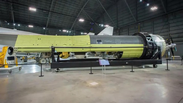 Một vệ tinh KH-9 Hexagon, cùng loại với cái mang theo "vệ tinh ma" S73-7 được trưng bày tại Phòng trưng bày Không gian của Bảo tàng Quốc gia Lực lượng Không quân Mỹ - Ảnh: USAF/Jim Copes