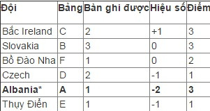 * Albania đã thi đấu xong ba trận vòng bảng.
