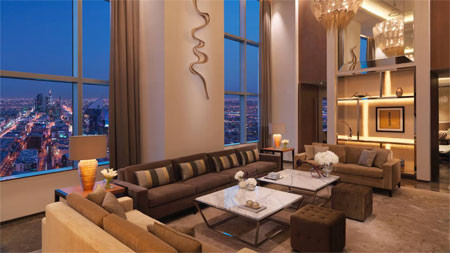 Theo trang Business Insider, phòng Kingdom Suite mới được mở trong khách sạn Four Seasons ở thủ đô Riyadh của Saudi Arabia. Phòng siêu sang này trải từ tầng 48 tới tầng 50 của khách sạn và có hướng nhìn tuyệt đẹp ra toàn cảnh Riyadh.
