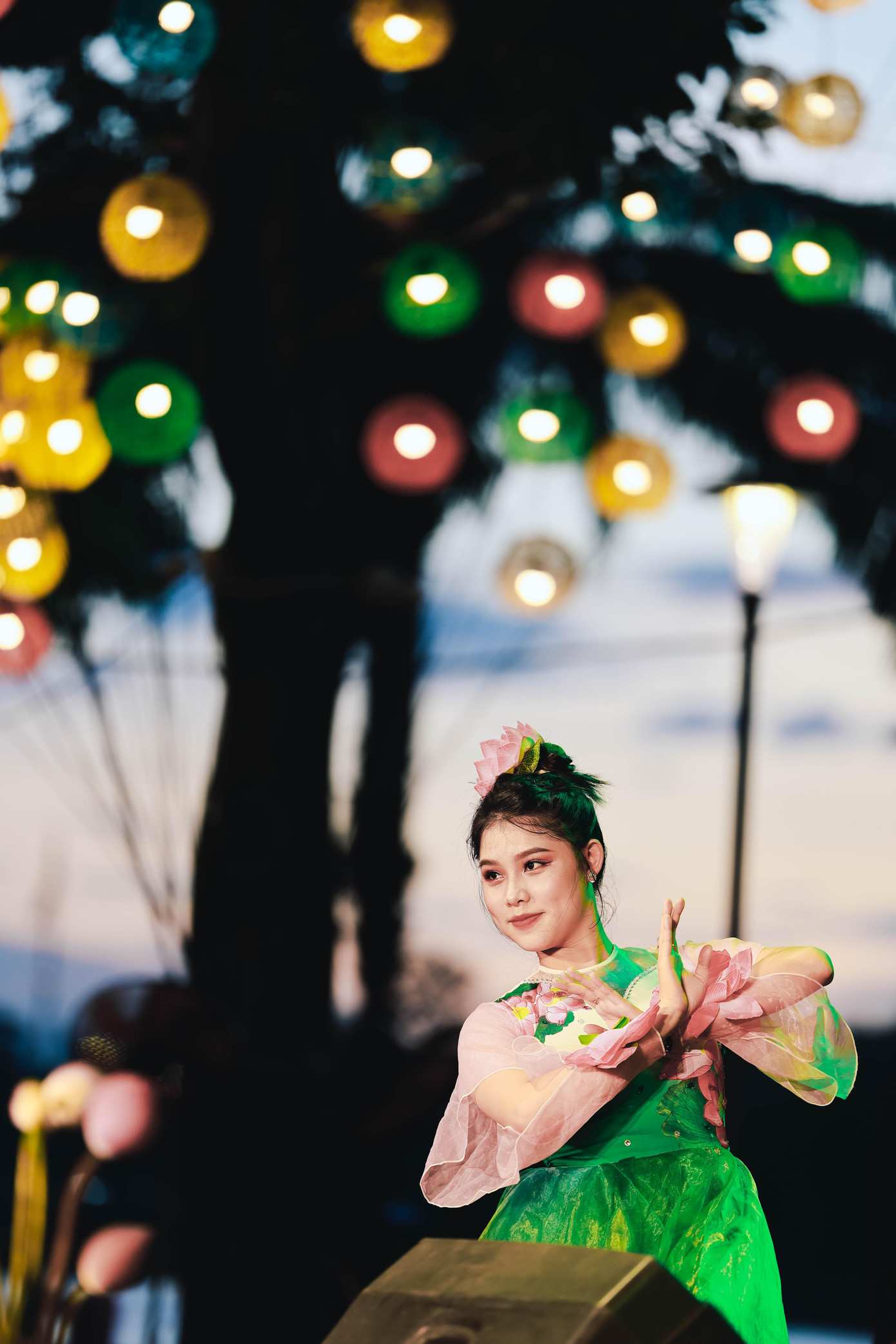 | Biểu diễn nghệ thuật với tạo hình hoa sen. Ảnh: Nguyễn Đình Chiến |